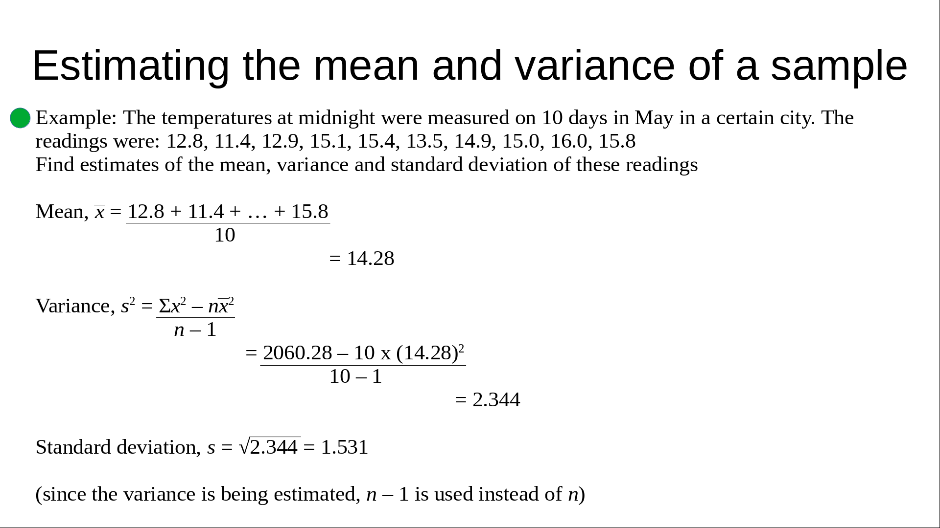 Further Statistics