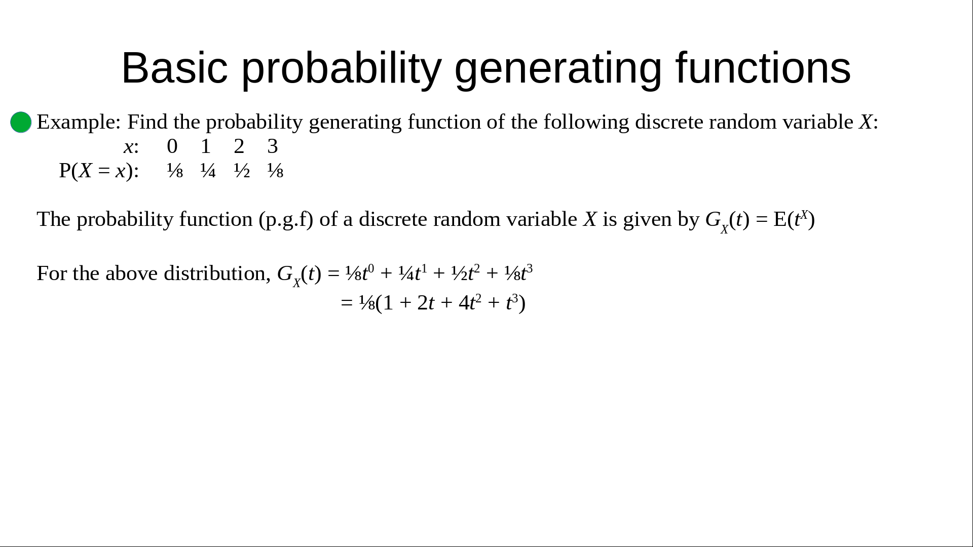 Probability Generating Functions